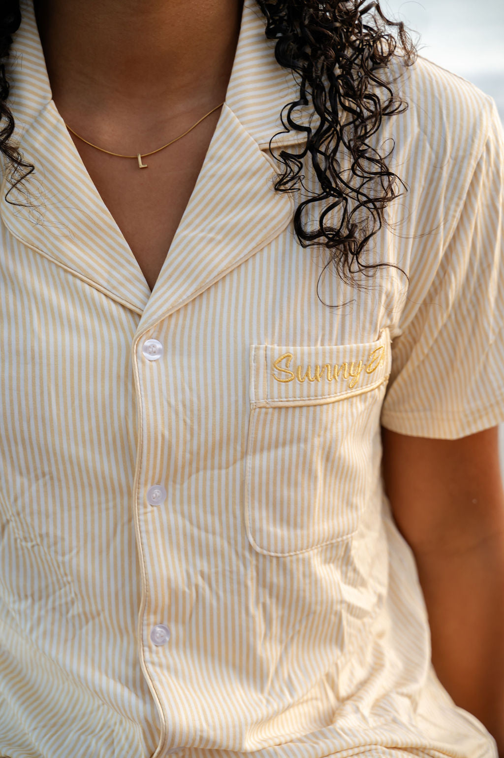 Crafted from 95% bamboo, this short PJ set is naturally hypoallergenic, ultra-soft, and gentle on sensitive skin. The relaxed button-up tee gives that effortless lounge look, while the matching shorts are lightweight.