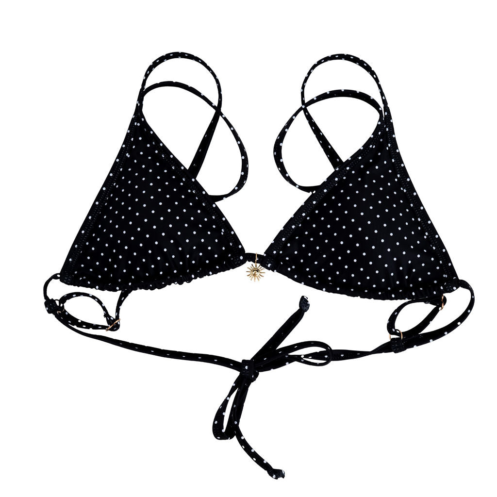 The Sunset Bikini Top features a classic triangle shape with fixed double straps and an adjustable tie-up back, so you can find your perfect fit. A sliding cup design gives you flexible coverage, and the gold sun charm at the centre front adds a playful, signature touch.