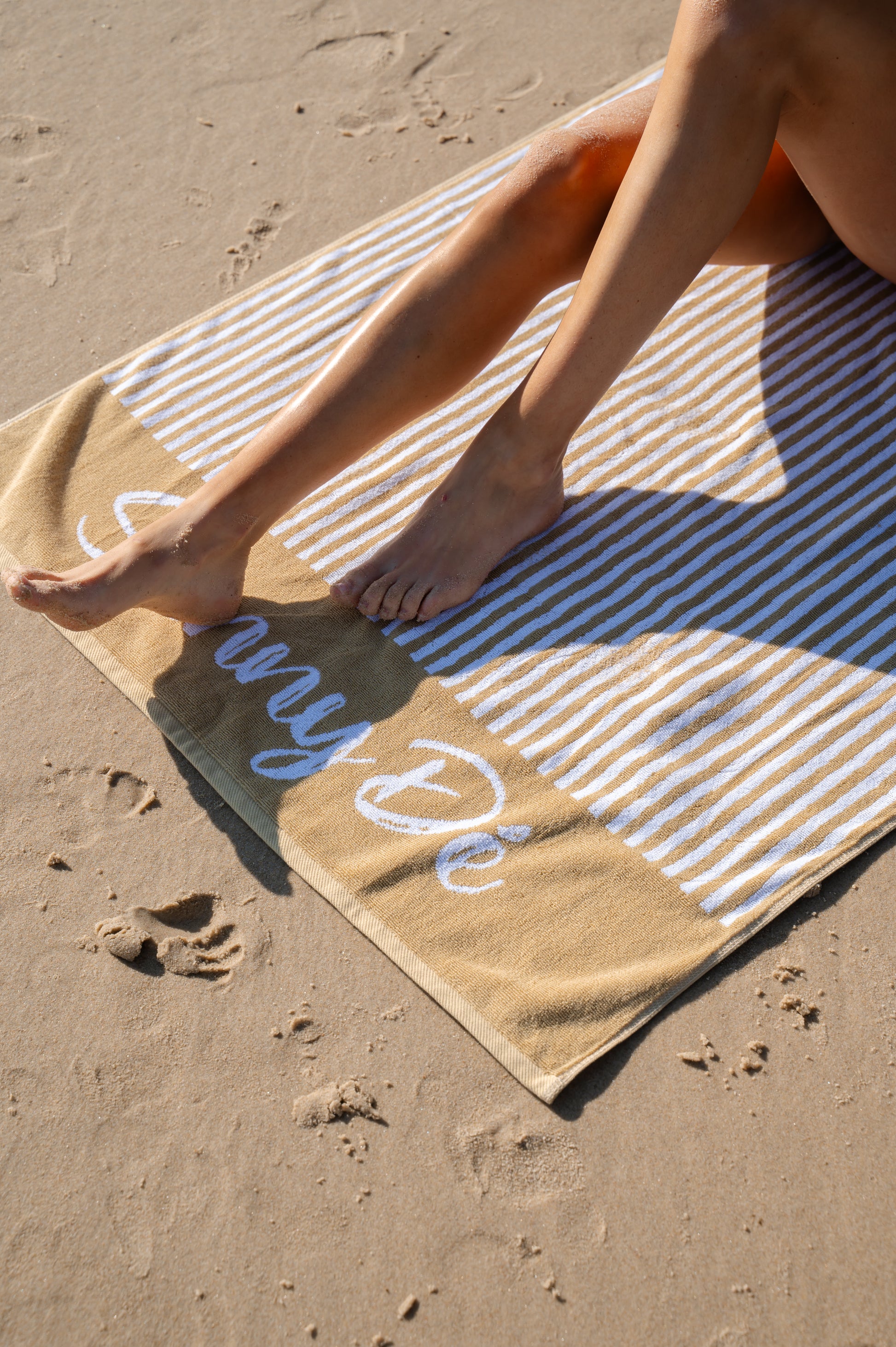 Soft, sun-ready, and made for slow days by the sea. Our Golden Tan Lines Beach Towel is crafted from plush jacquard fabric - ultra-absorbent and gentle on the skin - for that post-swim dry-off or poolside lounge.